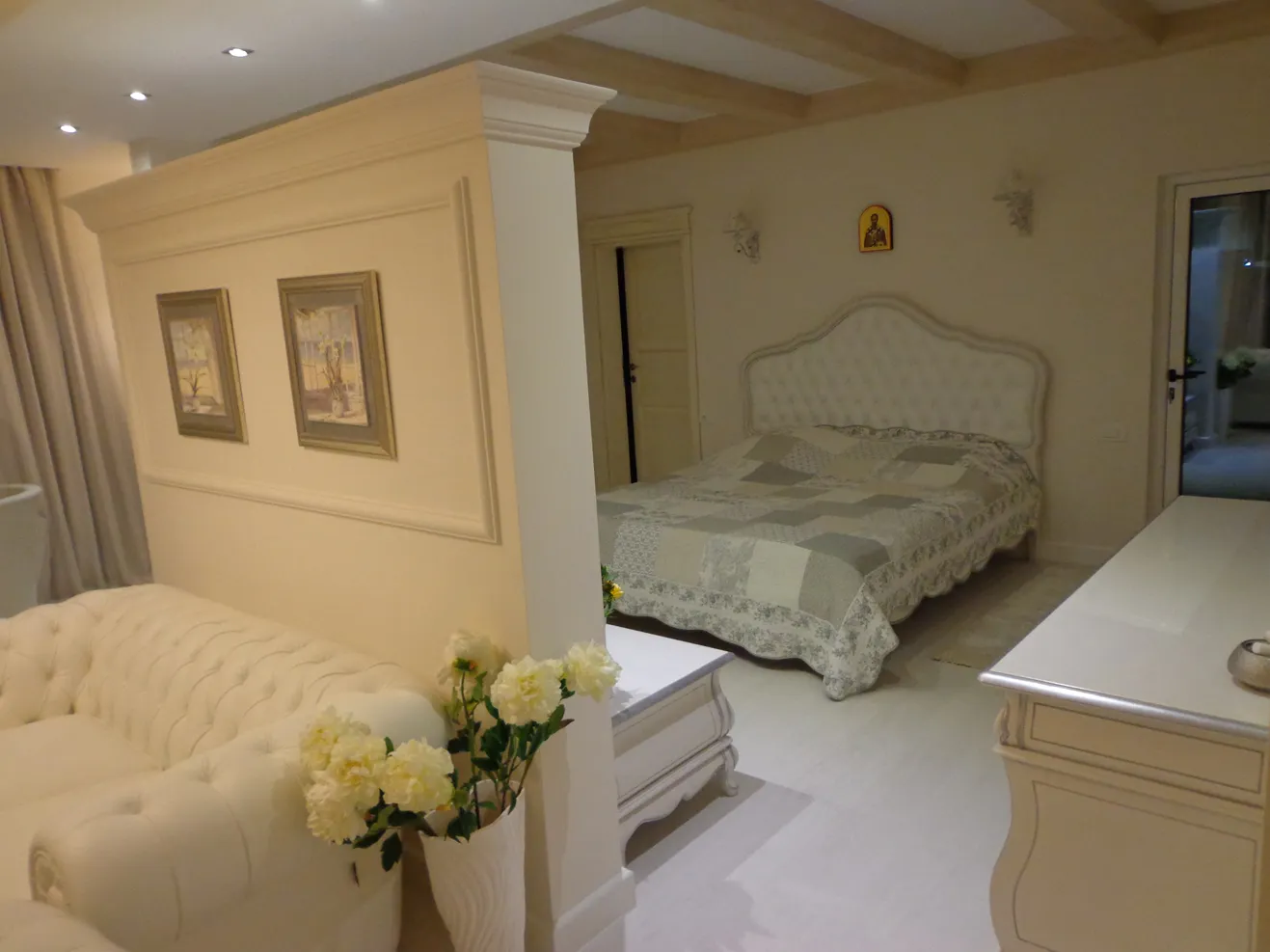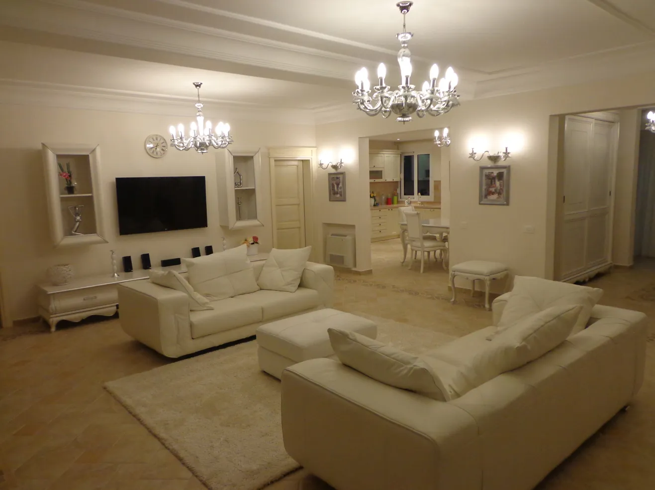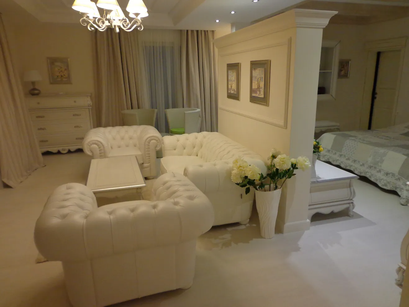 Вторая вилла общей площадью 400 м2 имеет два этажа. На первом этаже находится большая гостиная, кухня-столовая ( встроенный холодильник, посудомоечная машина, варочная панель, духовой шкаф и микроволновая печь), санузел и маленькая спальня на одного человека. На втором этаже виллы расположены две спальни со своими с/у.