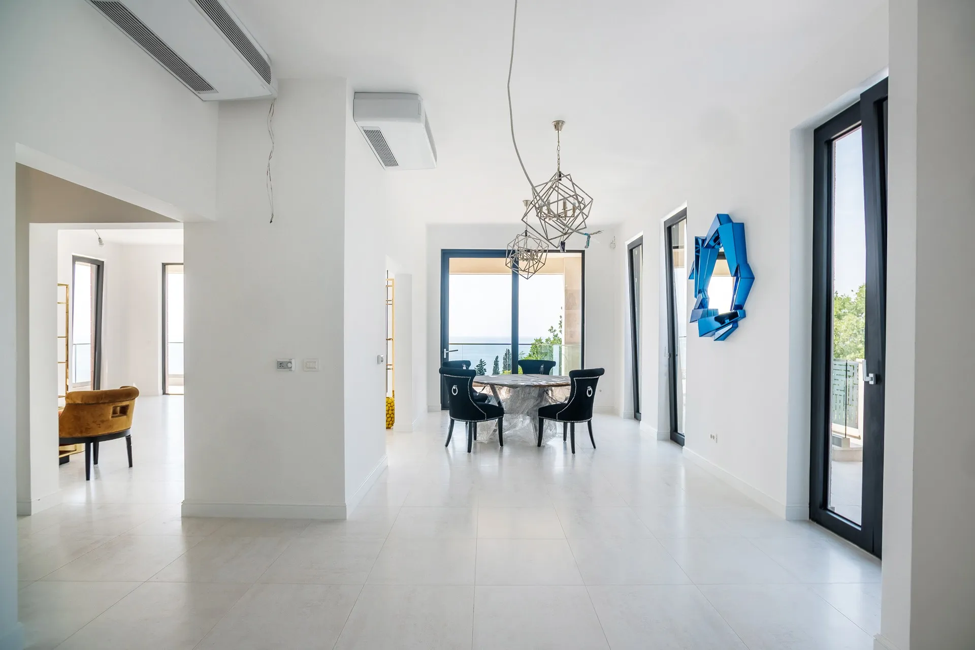 In der Villa werden Sie von jeder Etage aus mit einem Panoramablick auf das Meer begrüßt, sodass Sie in die Schönheit der Umgebung eintauchen und faszinierende Sonnenuntergänge erleben können.